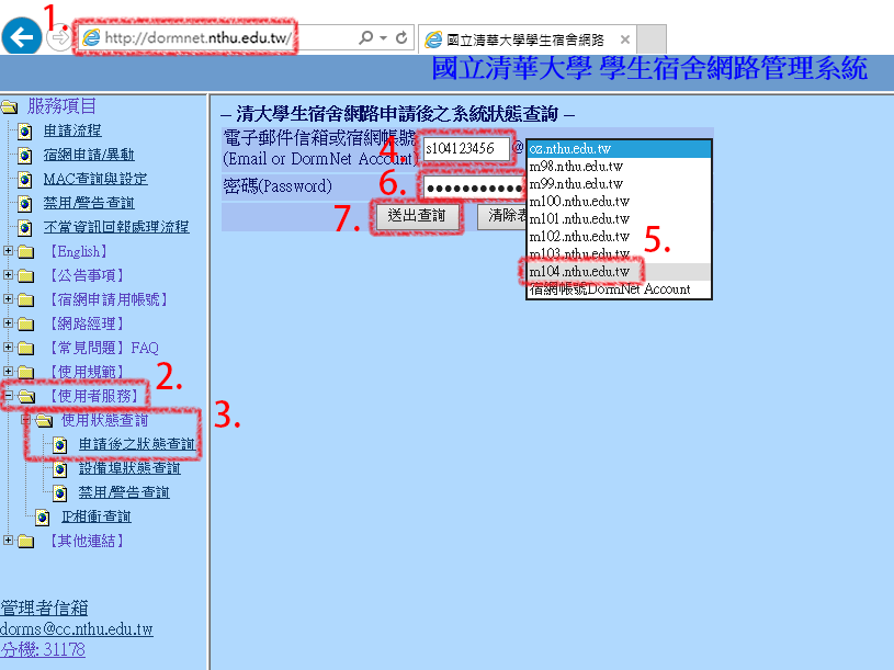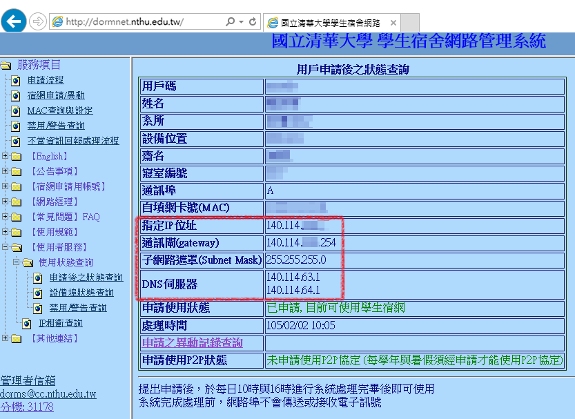 - 輸入網址:http://dormnet.nthu.edu.tw/ ,如圖示1:
